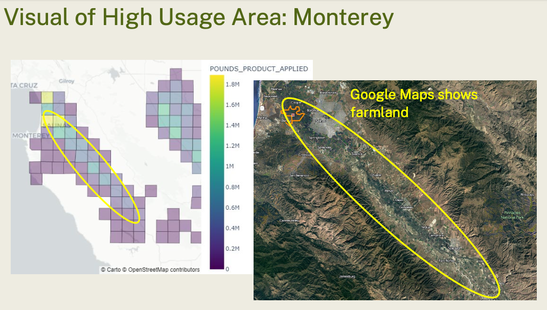 “It’s just so normalized here, but California lights up like a lightbulb when you put pesticide use data over the entirety of the state,” he said.